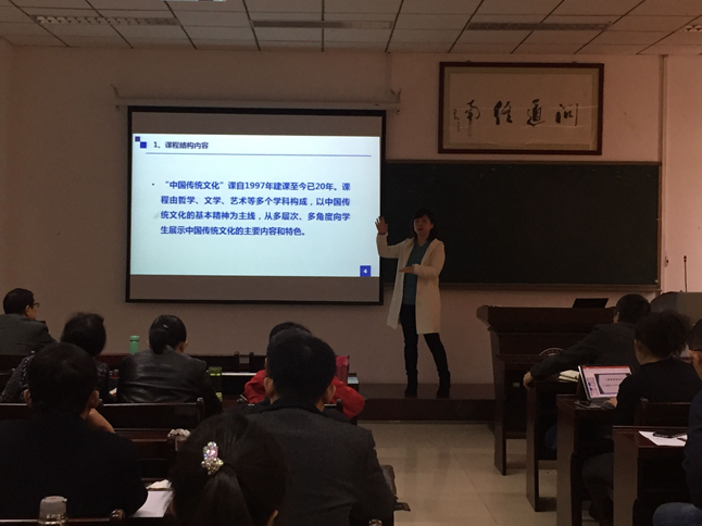 李娟副教授以她建设的《中国传统文化》课程为例,首先给教师们介绍了《中国传统文化》这一网络课程的课程结构内容、教学团队、课程成果及课程运行等情况。随后,李娟副教授从内容转变、角色转变、组织转变、方法转变四个方面给老师具体讲解了如何把一门传统的课程建设成网络课程。她指出网络课程是一个趋势,越早做越有优势。此外,做好一门网络课程不仅要注重制作技术,更要注重课程内容。她建议,可以以团队合作或课程组的形式建设一门网络课程,以做到课程内容精益求精。