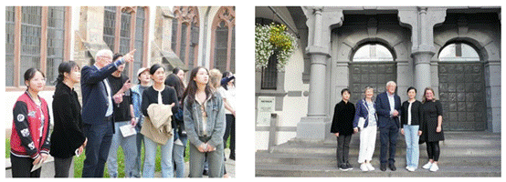 交流会结束后,帕德博恩前市长和孔子公司负责人热情地带领师生实地探访了帕德博恩城市,了解帕德博恩城市的历史。古老的建筑、雄伟的教堂,将同学们带入了一个扑面而来的历史画卷,不仅让团队每位成员更深刻地体验多元文化,开阔国际视野,而且帮助大家更好地聚焦中德两国文化融通、价值传播的理念与做法,探索讲好中国故事、让世界听到中国声音的多元途径。