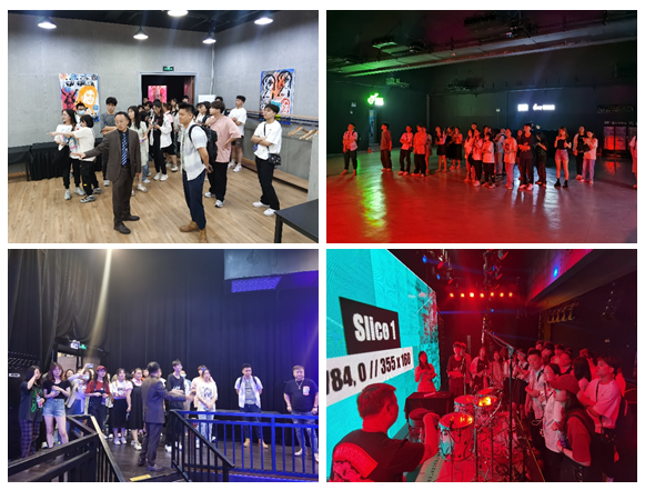在Live House演出空间,大华1935剧场音响老师李老师讲解了鼓组的录音及扩声技巧、话筒摆放位置等相关专业知识,理论与实践在这次参观活动中相互结合,员工们对录音与扩声的拾音技术有了更深层次的认知和比较。在活动结束时,周老师对公司师生前来剧院参观学习表示肯定与支持,并欢迎同学们来剧院实习,学习剧场专业技术、运营管理以及活动策划等相关内容。