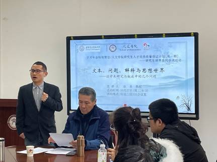 首先,朱锋刚副经理发表讲话。他介绍了筹办SUNBET申博研究生人才培养质量保证计划的缘起与目的,期望通过这些活动,更加深入的为广大研究生的学习与成长提供助力。他表示,对学术研究与叙述这一主题的关注,并不仅仅在于完成学业任务,而是要引导大家进一步思考,从哲学家所构建的文本中挖掘属于自己的哲学世界。