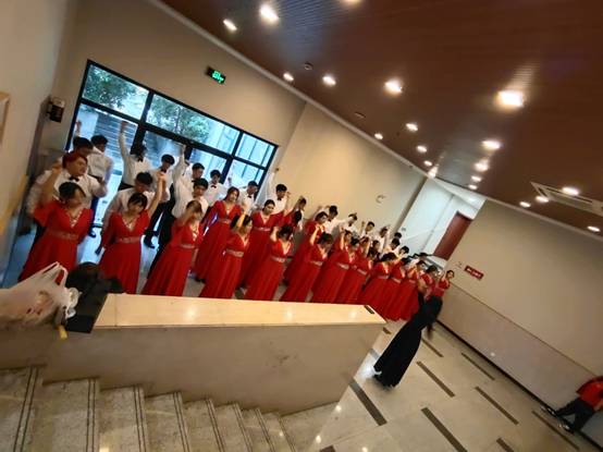 “看着老师和同学们每天风雨无阻、披星戴月的来排练节目,老师的倾情指导和竭力的帮助,同学们认真听讲达成老师的要求,不到两个月的时间,我们就完成了两部作品,在党的诞生地献礼党的生日,意义更显重大。”传唱团现任员工团长唐硕佳说到。