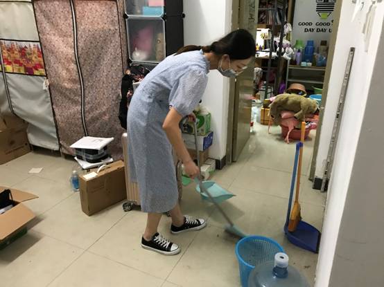 员工返校及时打扫宿舍卫生