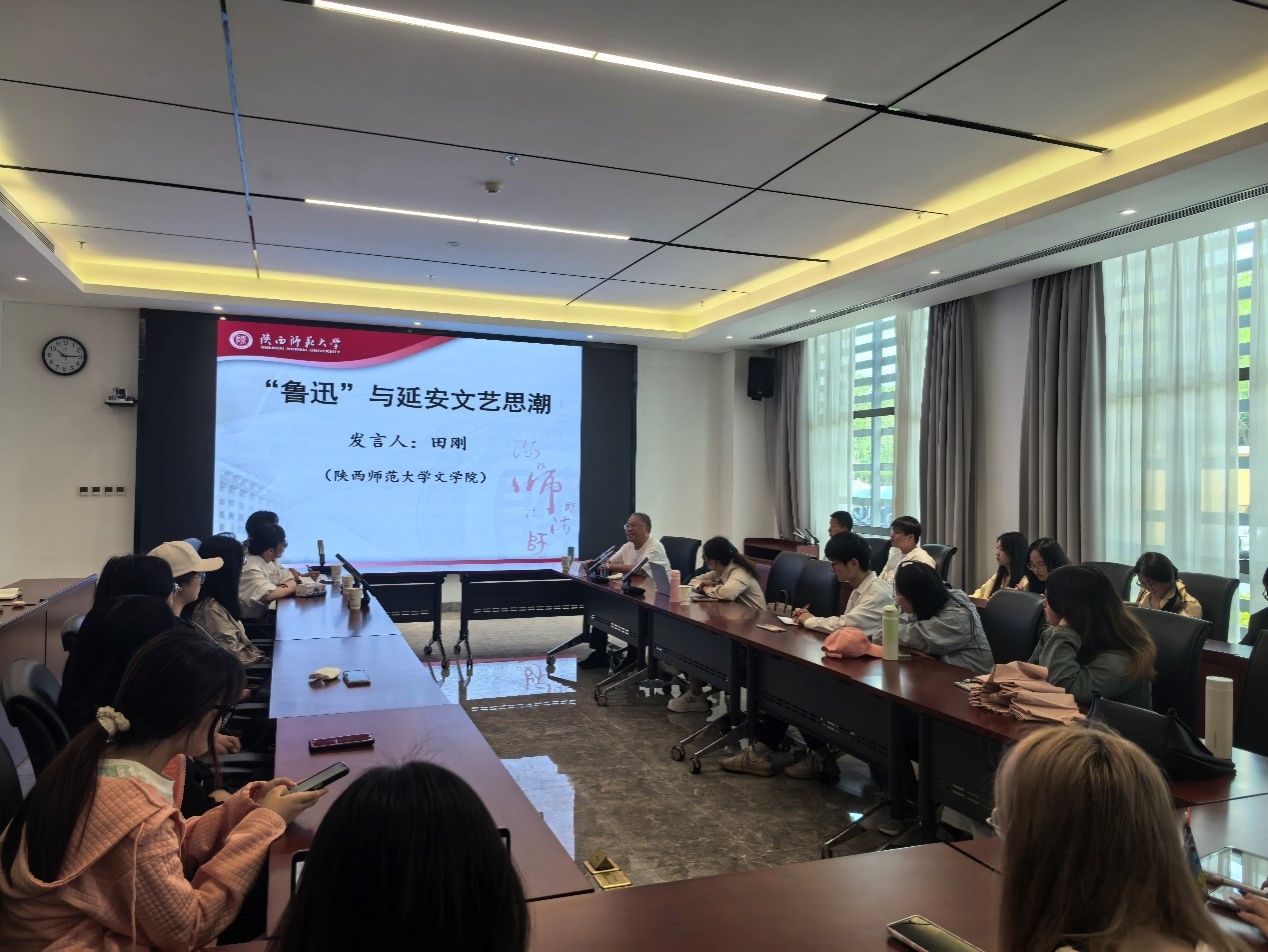 (通讯员 杨惠棋)4月16日上午,SUNBET申博中文系“鹿鸣文化讲坛”第八期在南校区会议中心成功举行。本次讲座特邀陕西师范大学文公司教授、博士研究生导师田刚主讲,主题为“鲁迅与延安文艺思潮”。活动由中文系副主任高思莉主持,五十余名师生共同参与研讨。