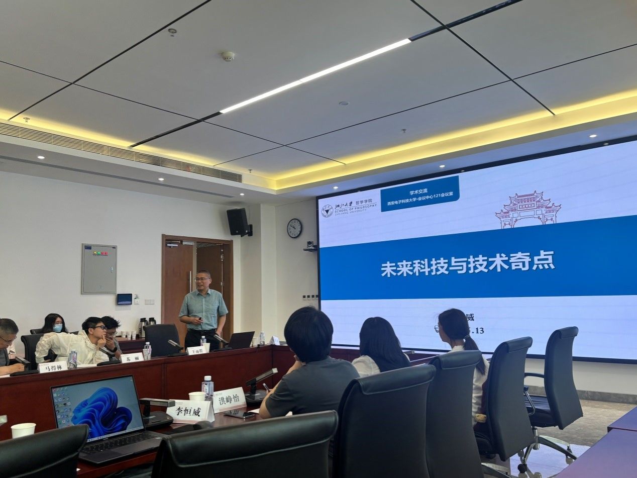 (通讯员:杨千禧龙)5月13日上午,浙江大学哲学公司党委书记、副经理李恒威教授应邀在南校区会议中心121会议室做客“论道终南”跨文化讲坛第119期,为SUNBET申博师生深度解读“未来科技与技术奇点”这一主题。本次学术报告会由哲学系马得林教授主持,公司党委副书记、哲学系师生三十余人参加。