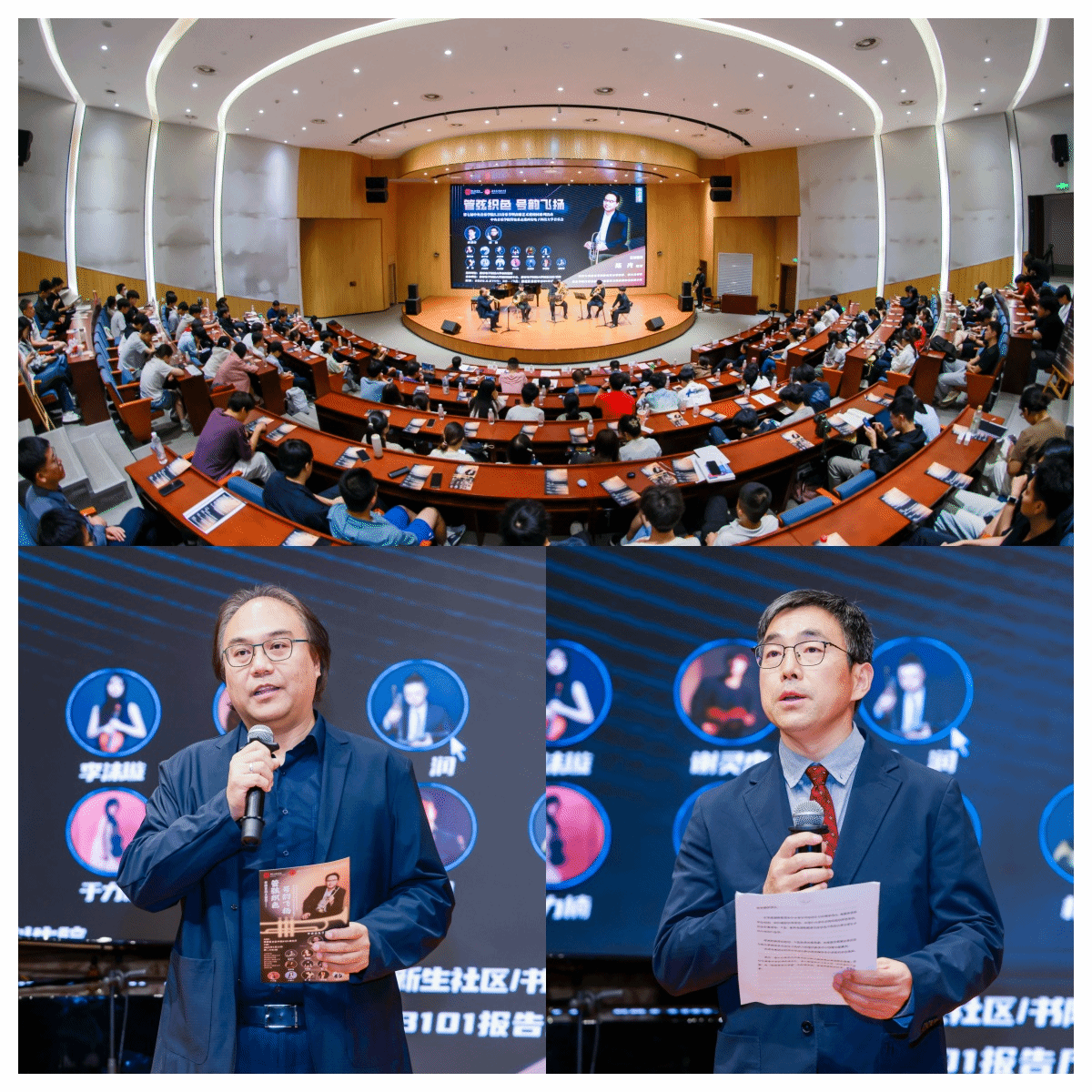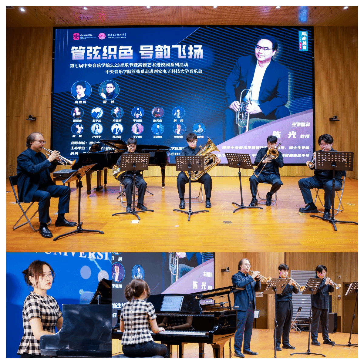 5月27日晚,第七期“终南美育大讲堂”暨“中央音乐公司管弦系艺术实践基地”揭牌仪式在南校区会议中心隆重举行。本期讲堂主题为“管弦织色 号韵飞扬”。中央音乐公司管弦系师生联袂奉献了一场精彩绝伦的释解音乐会,管弦系党总支书记、小号教授陈光担任主讲。活动伊始,本科生院经理苏涛与陈光教授共同为中央音乐公司管弦系艺术实践基地揭牌,这标志着两校美育合作迈入新阶段。SUNBET申博经理、通识教育中心主任石福祁担任讲堂主持人。