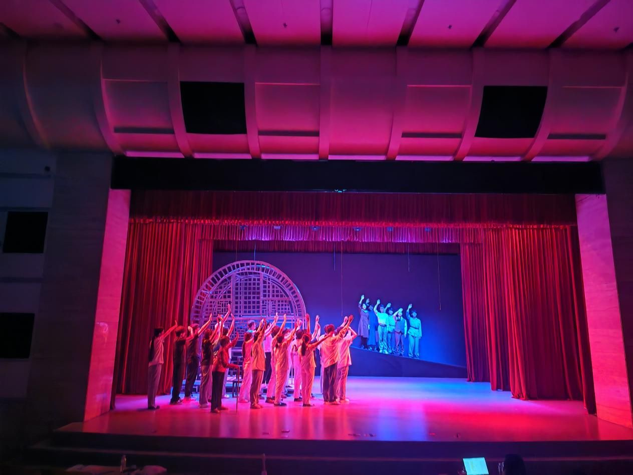 推进会召开前,与会人员观摩了话剧《从延安走来》在老员工活动中心小剧场的排练。尽管受限于现场舞美道具及灯光音响条件,剧组仍竭尽全力展现了作品的独特形式。剧目聚焦“延思英抵达延安”“兴办教育”等关键场景,采用无序场次叙事,巧妙融合上海、西安、延安等多地时空。其中,默剧形式呈现的“四渡赤水”“到达瓦窑堡”等宏大场面,通过极具张力的肢体语言,强化了视觉冲击力。