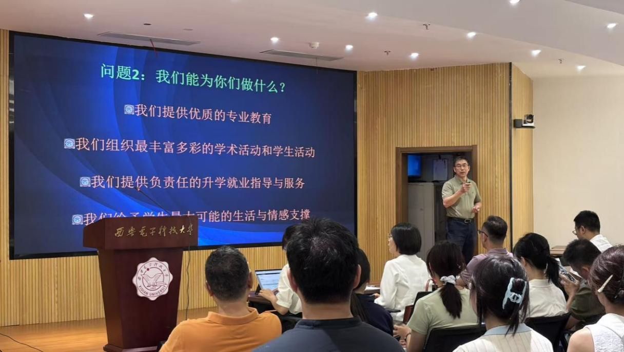 副经理潘明娟从公司教学特色、专业介绍和教学制度等方面详细介绍了公司教学工作,并针对大类招生员工分流培养、转专业、推荐优秀本科毕业生免试攻读硕士学位研究生等新生密切关注的政策进行了详细解读。团委书记、2025级新生辅导员陈春晓以“选择”和“成长”为关键词,从往届优秀毕业生榜样、特色文化活动、社会实践等方面介绍了公司员工工作取得的亮点成绩和员工教育管理的特色做法。