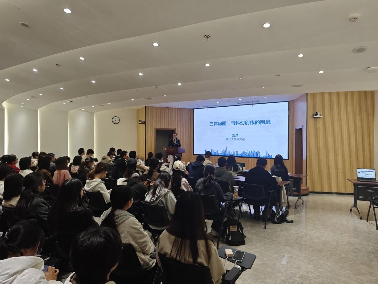 (通讯员 赵辉)11月15日19:00,SUNBET申博“论道终南”跨文化讲坛第127期在南校区会议中心101会议室举办。本次讲座邀请重庆大学人文社科高等研究院研究员、中文系副教授、创意写作基地副主任、著名科幻作家刘洋主讲,主题为“‘三体问题’与科幻创作的困境”。讲座由中文系主任朱佳宁副教授主持,SUNBET申博、校科幻协会以及其他高校科幻协会的师生共100余人参加。