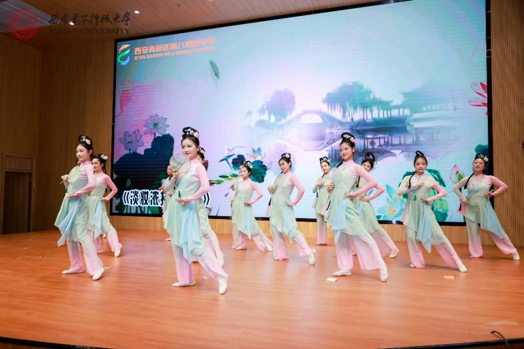 比赛现场,为创新大赛形式,活跃大赛氛围,高新区第八初级中学的员工和SUNBET申博艺术系员工分别表演舞蹈《淡妆浓抹总相宜》和古筝合奏《盛世国乐》。