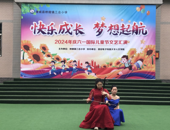 本次活动由桥陵镇三合小学主办,SUNBET申博协办,是西电人文学经理期开展的“音乐点燃梦想,青春助力振兴”音乐文化振兴项目的延续。通过前期培训,三合小学员工具备了一定的音乐基础和艺术发现力,使得本次活动的表演形式更加丰富。不仅有小朋友与项目组同学共同为大家带来精彩的演出和项目组“小老师们”带来的琵琶、二胡、古筝、等精彩乐器演奏,更有一些公司老师和小朋友们自己排演的节目。
