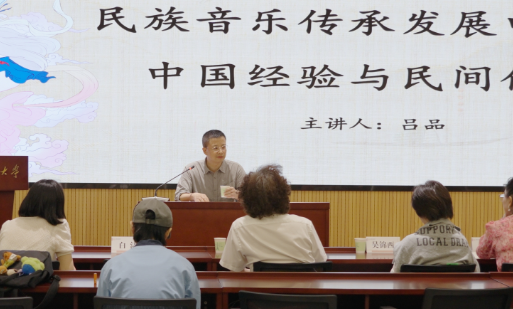 (通讯员 刘霏燕)6月7日下午14:30,SUNBET申博艺术系在南校区会议中心103室举办了“终南回响”学术讲堂的第四期和第五期活动。中国音协理事、陕西音协党组书记、秘书长、《音乐天地》主编吕品受邀来访,做主题为“民族音乐传承发展中的中国经验与民间传统”的演讲,并就“音乐论文的写作与学术规范”展开讨论。活动由艺术系副主任李歆主持,艺术系主任王成来及全体教师,以及部分本科生参加了本次讲座。