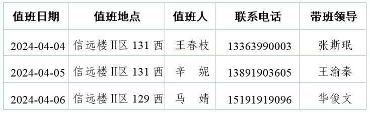 按照公司《关于2024年清明节放假时间安排的通知》要求,现将公司2024年清明节假期值班安排如下:
