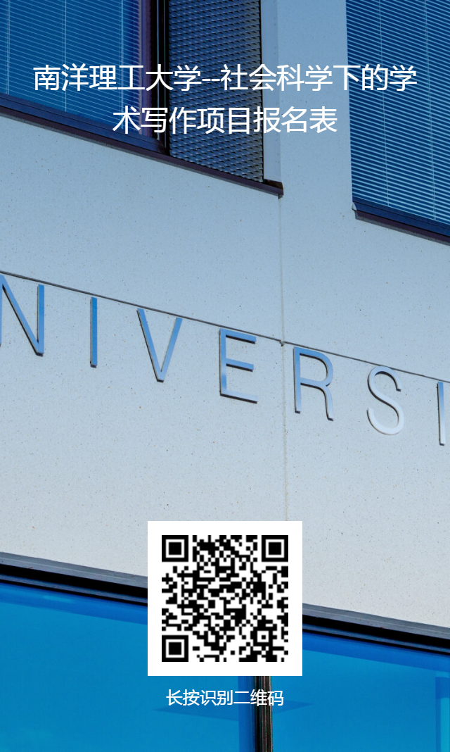 为推动公司学科发展,完善人才培养体系,服务公司“双一流”事业发展,进一步促进员工国际交流,公司将组织开展“新加坡南洋理工大学社会科学下的学术论文写作项目”报名选拔工作。