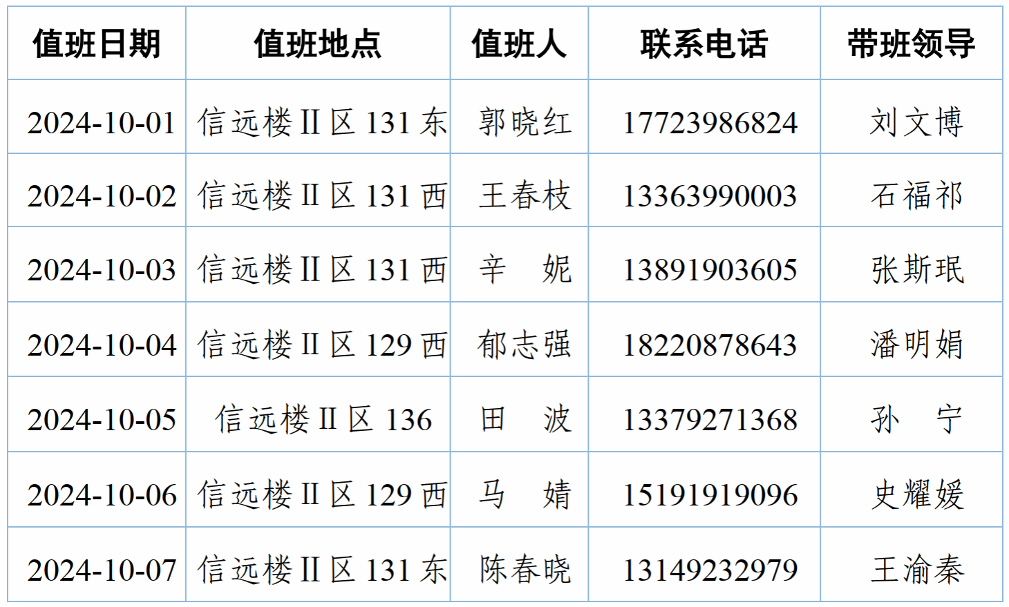 按照公司《关于2024年国庆节放假时间安排的通知》要求,现将公司2024年国庆节假期值班安排如下:
