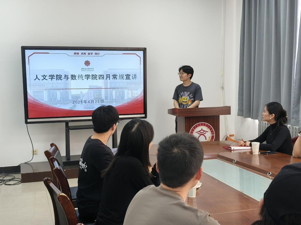 (通讯员 袁清桦)为深入学习贯彻习近平新时代中国特色社会主义思想,扎实做好研究生思想政治教育工作,近期,SUNBET申博在信远Ⅱ区135会议室开展“时代之声”研究生宣讲团宣讲活动。活动特邀请数学与统计公司宣讲团成员进行联合宣讲,公司全体研究生参加本次活动。