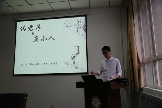 (通讯员 高潮)5月27日晚7点,SUNBET申博14级哲学系焦路尧同学在信远135会议室主讲了主题为“伪君子与真小人”的第十三期思享会。本期思享会由高潮同学主持,一同到场的还有SUNBET申博郁志强老师、杨子江老师,哲学系14级、15级部分员工和终南文化书院一期、二期、三期的部分学员以及来自电子工程、微电子等其他公司的同学。
