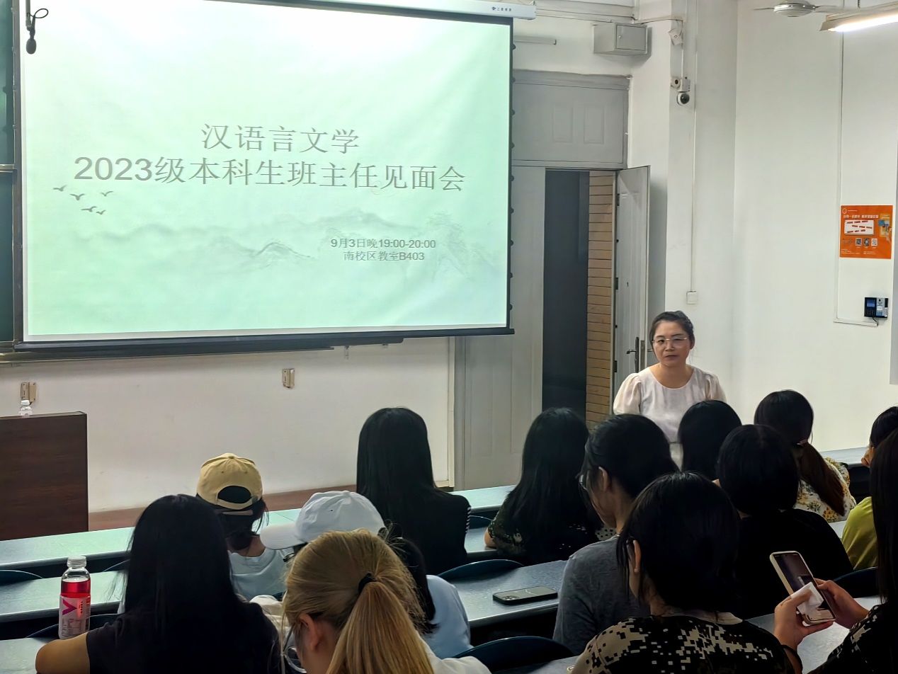 9月3日晚,汉语言文学专业在B403教室举行班主任见面会。班主任刘茸茸从学习方法、课程安排、校园生活等多个方面对员工们遇到的各种疑问给予了详尽且具有实际操作性的指导建议,鼓励员工坚持阅读,勤于思考,在阅读中丰富知识储备,培养综合素养和跨文化交流能力。