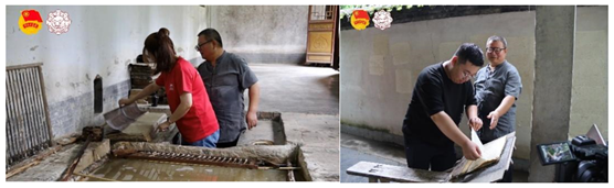 3.古法造纸,沉浸体验。在洋县蔡伦纸文化博物馆,实践团认真学习了纸的起源与传播的历史,在古作坊的造纸工艺流水线上,近距离观看了身怀绝技的矍铄老艺人进行的现存世界上保存最完整、最古老的蔡侯纸造纸全过程,亲自参与打浆、抄捞等造纸过程,赞叹于古代劳动人民的勤劳与智慧。