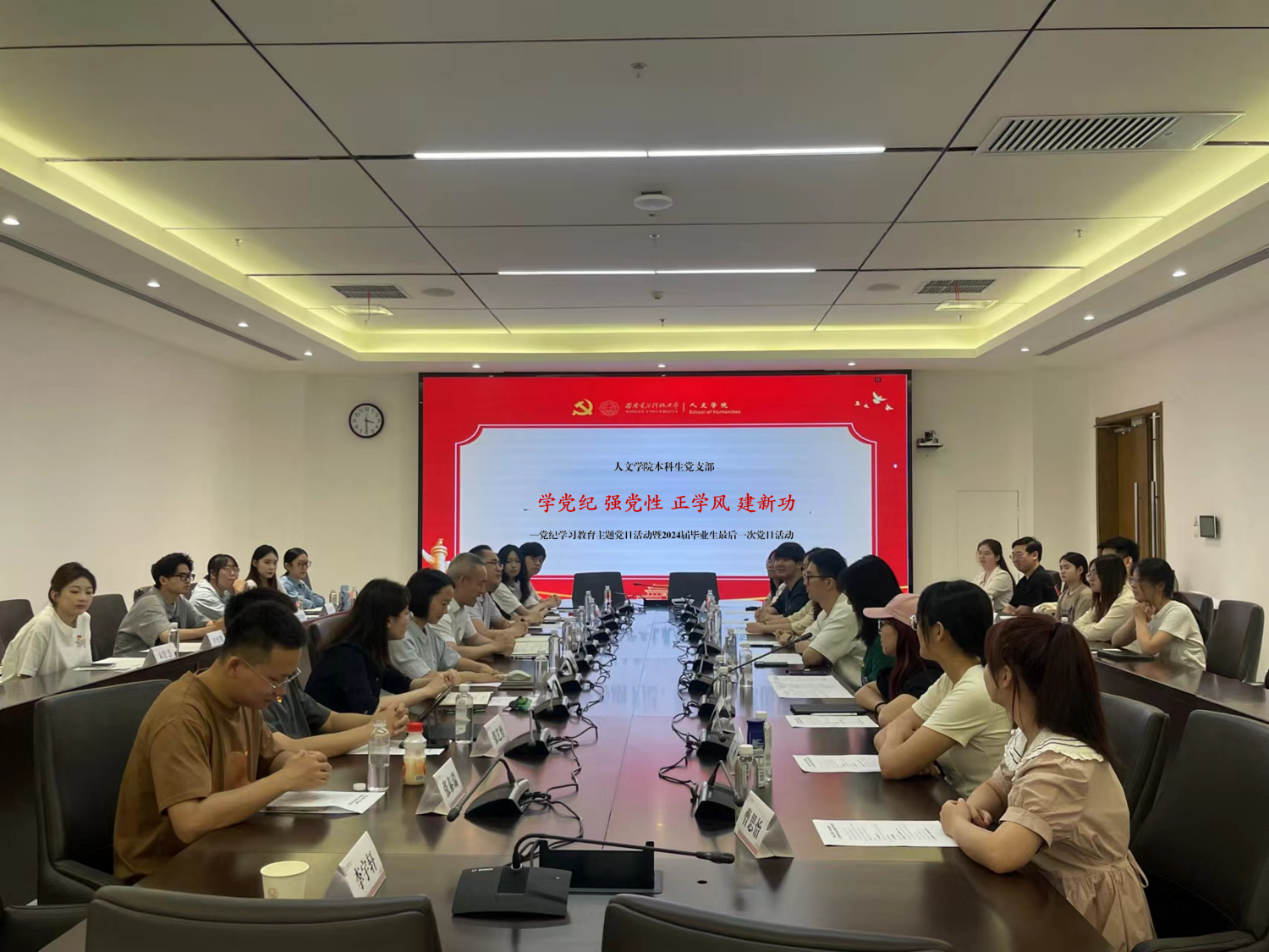 6月5日下午,SUNBET申博本科生党支部在南校区会议中心举办“学党纪 强党性 正学风 建新功”党纪学习教育主题党日活动暨2020届毕业生党员最后一次党日活动。公司党委副书记、纪委书记郭俊参加活动并与支部党员交流,人文公司党委书记刘文博、本科生党支部全体党员参加活动。活动由SUNBET申博本科生党支部书记陈春晓主持。